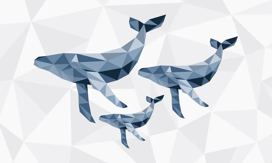 Fototapeten Gruppe von Walen im Low-Poly-Stil