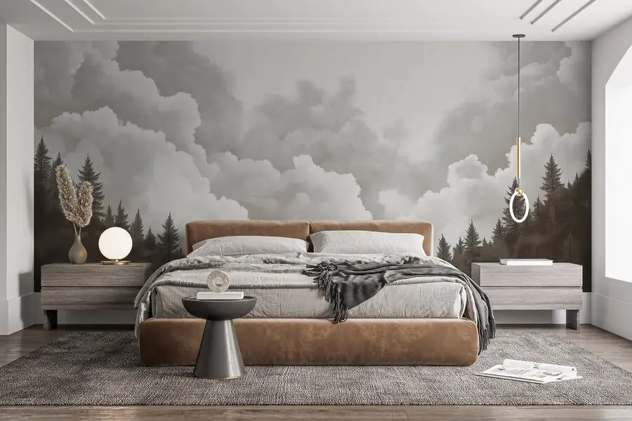 Fototapeten Gruppe von Bäumen und Wolken