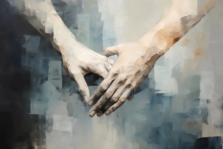 Fototapeten Sich berührende Hände verbinden in Einheit