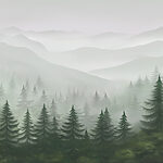 15.51 €9.31 €Fototapeten Landschaft mit Bergen, Bäumen und Nebel