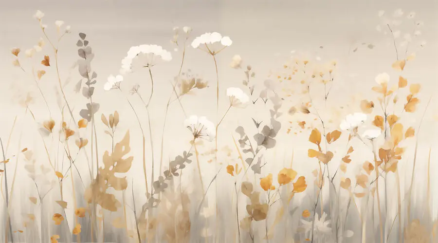 Fototapeten Malerei von Blumen und Blättern
