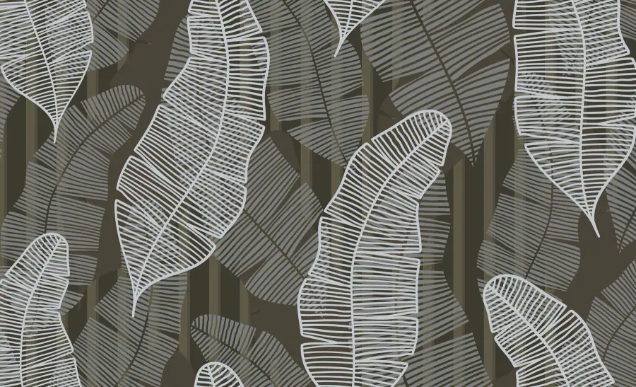 Fototapeten Muster aus weißen und grauen Blättern