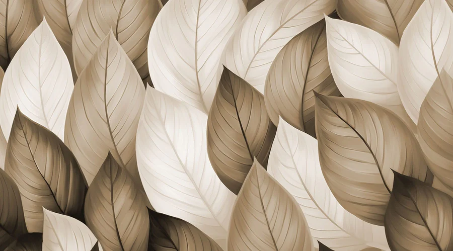 Fototapeten Gruppe von braunen und weißen Blättern