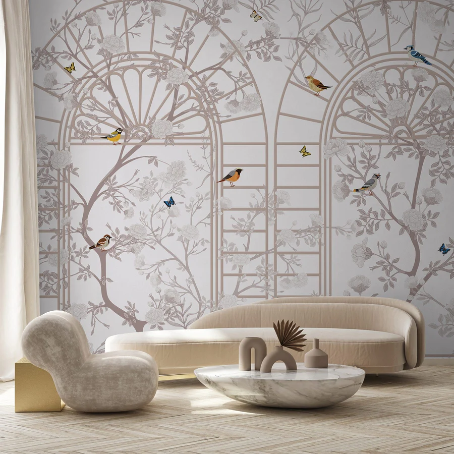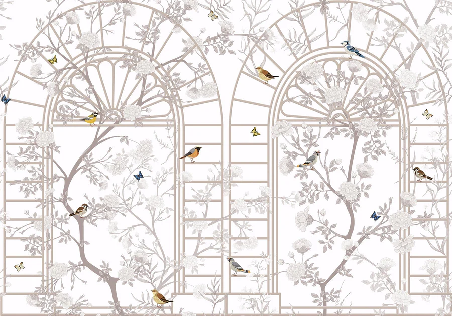 Fototapeten Tapete mit einer Leiter und Vögeln
