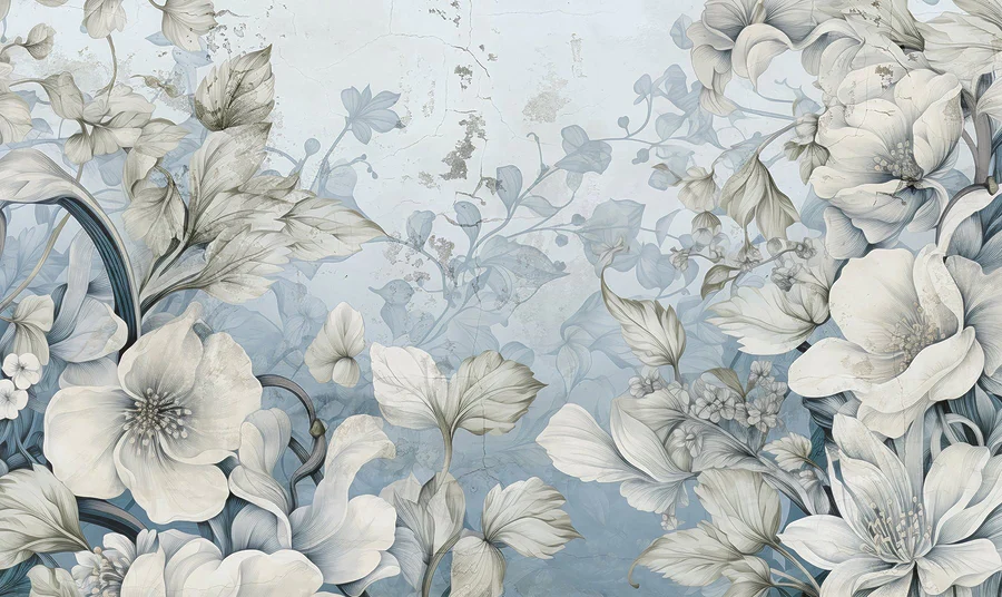 Fototapeten Tapete mit Blumen und Blättern
