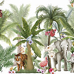 Fototapeten Hintergrundbild mit Tieren und Vögeln im Dschungel