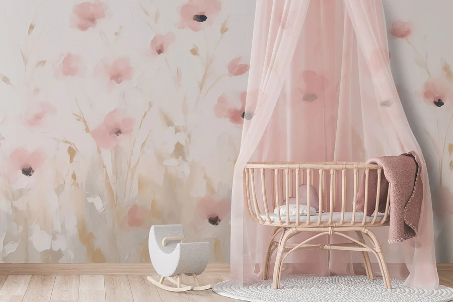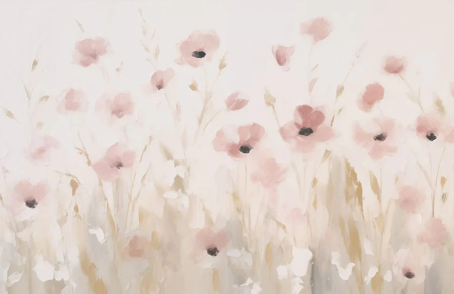 Fototapeten Gemälde mit rosa Blumen