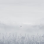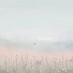 Fototapeten Vogel fliegt über ein Blumenfeld