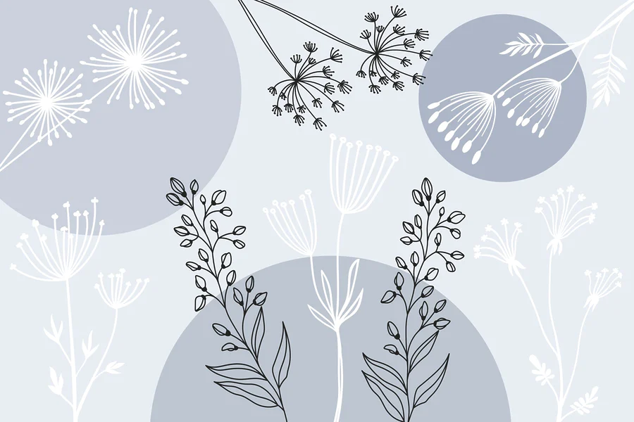 Fototapeten Zeichnung von Blumen und Pflanzen