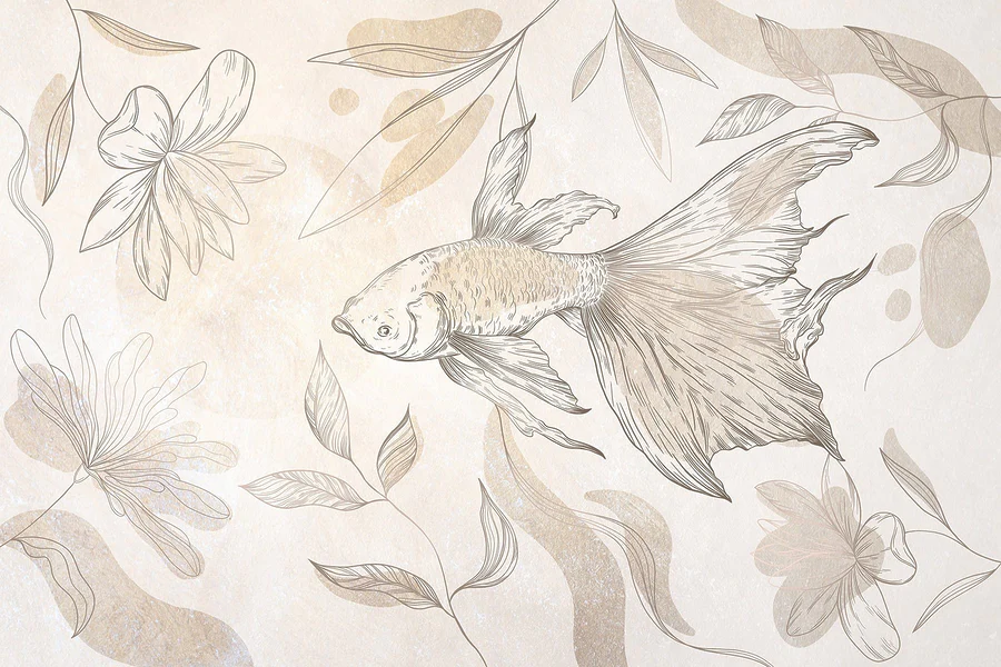 Fototapeten Eleganter Fisch inmitten floraler Motive
