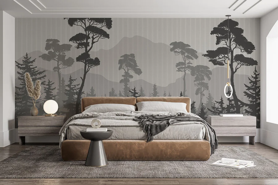 Fototapeten Landschaft mit Bäumen und Bergen