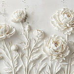 Fototapeten Weiße Blumenschnitzerei an einer Wand