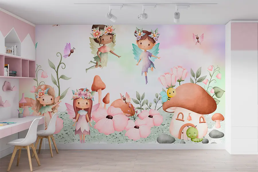 Fototapeten Gruppe von Feen in einem Garten
