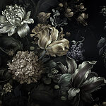 Fototapeten Gemälde von Blumen auf schwarzem Hintergrund