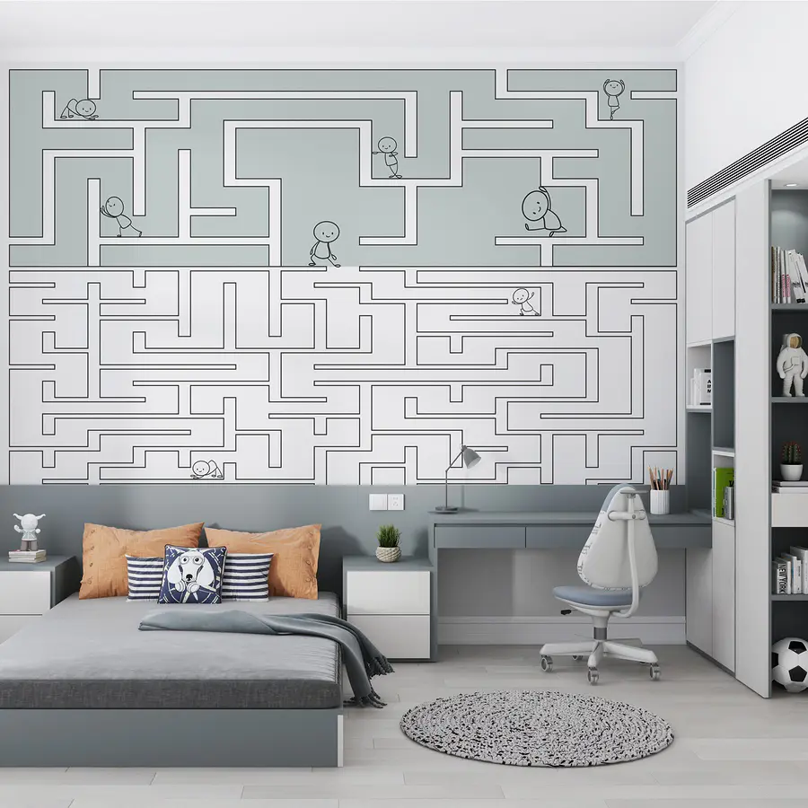 Fototapeten Labyrinth mit Menschen, die durch das Labyrinth gehen