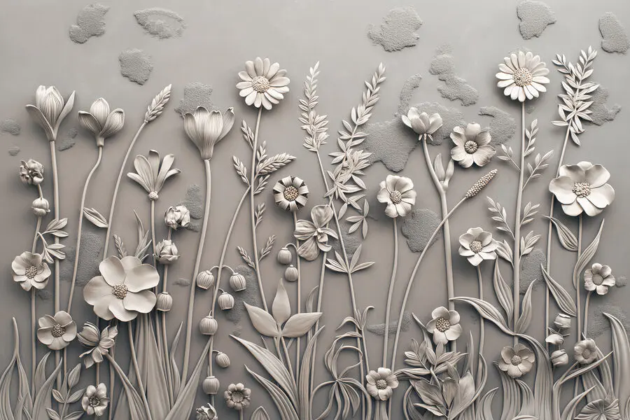 Fototapeten Ein Wandbild mit Blumen und Pflanzen