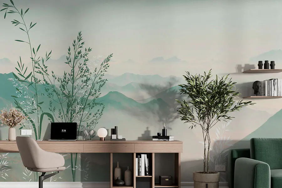 Fototapeten Eine Landschaft mit Bergen und Bäumen