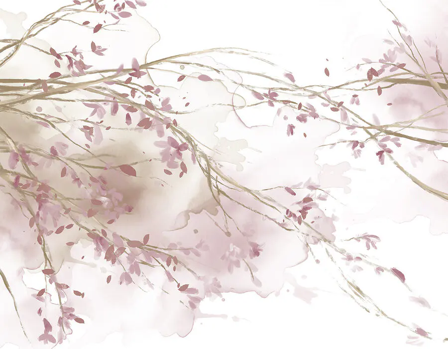 Fototapeten Aquarell eines Baumzweigs mit rosa Blüten