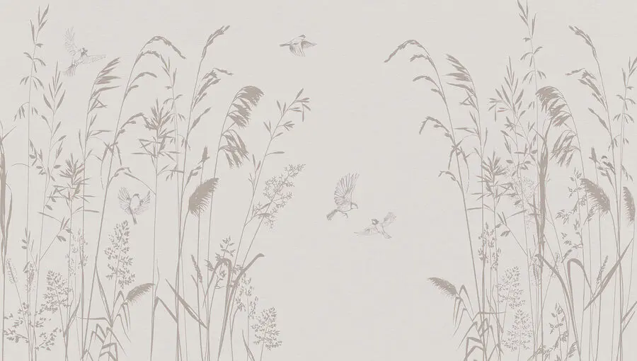 Fototapeten Vögel fliegen über hohes Gras