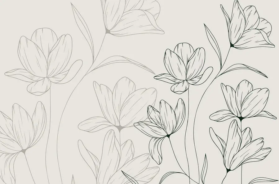 Fototapeten Zeichnung von Blumen auf einem weißen Hintergrund