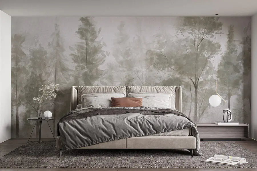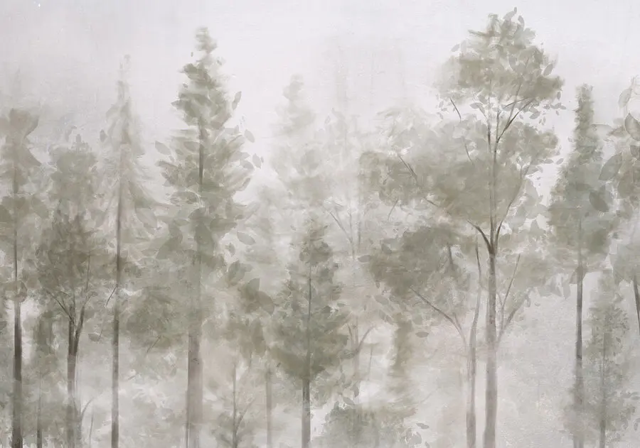 16.08 €8.84 €Fototapeten Aquarell von Bäumen und Vögeln, die über einen nebligen Wald fliegen