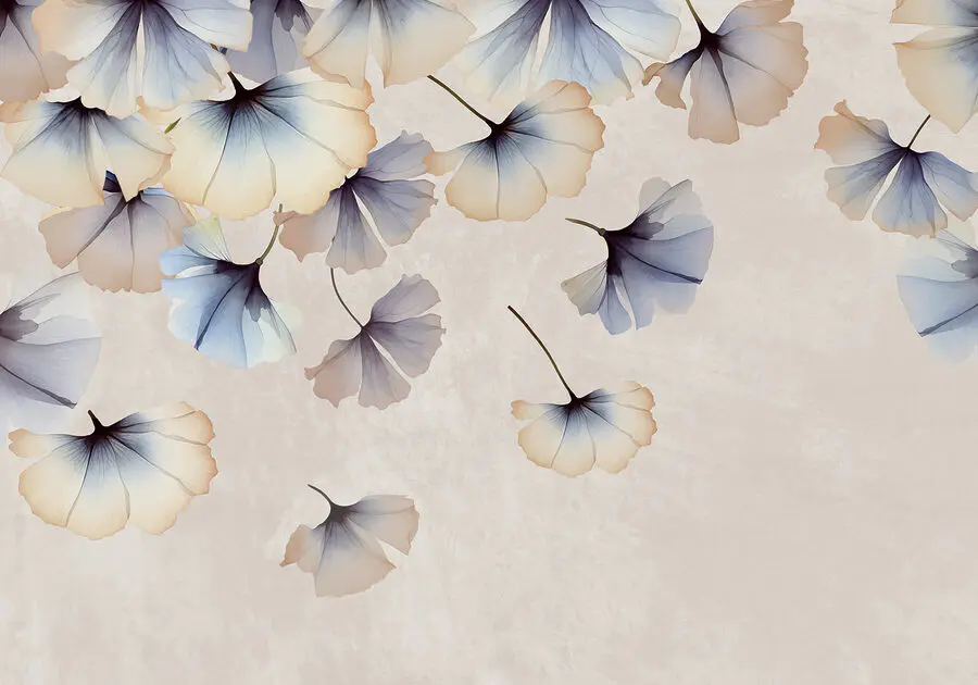 16.33 €9.79 €Fototapeten Tanzende Blüten vor blauem Hintergrund