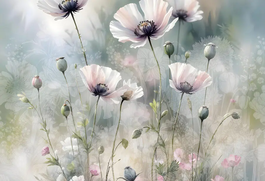 Fototapeten Zarte Blüten in sanften Farbtönen
