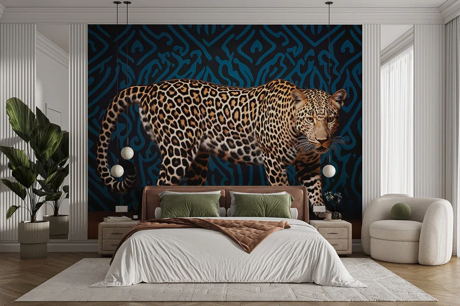 Fototapeten Leopard stehend auf einem Holzboden