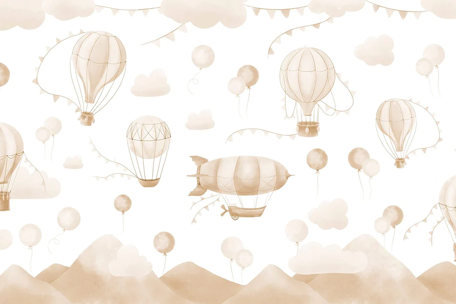 Fototapeten Gruppe von Heißluftballons und Bergen
