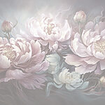Fototapeten Gemälde mit Blumen auf grauem Hintergrund