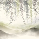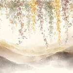 Fototapeten Gemälde einer Landschaft mit Nebel und Blättern