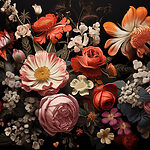 Fototapeten Gruppe von Blumen auf einem schwarzen Hintergrund