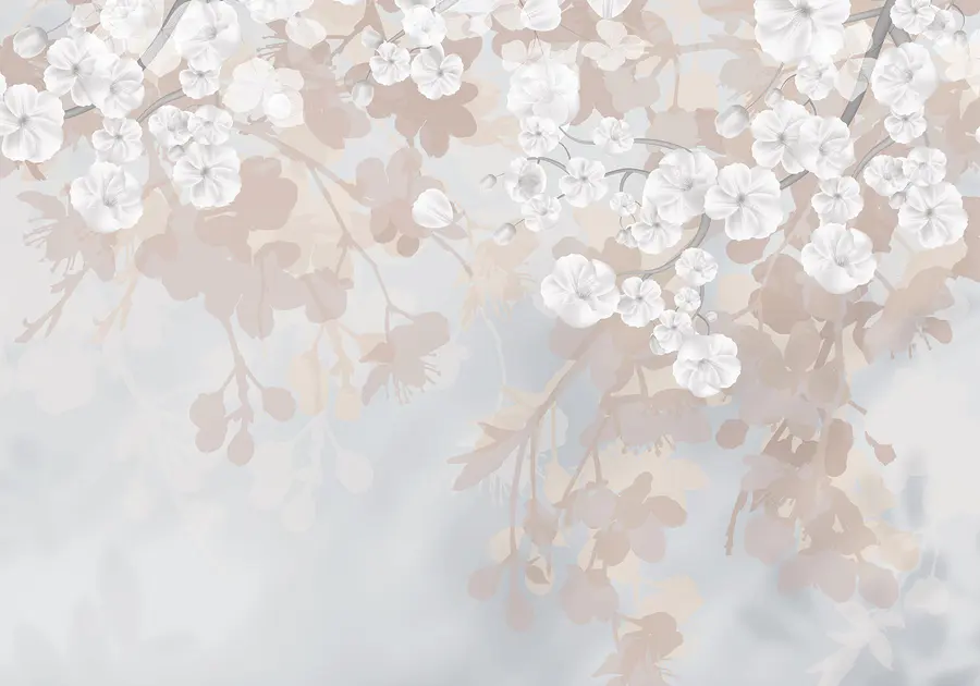 16.33 €9.79 €Fototapeten Weiße Wand mit Blättern und Blumen