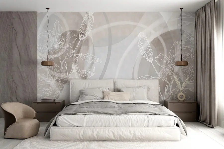 Fototapeten Zarte Blüten auf einer gedämpften Leinwand
