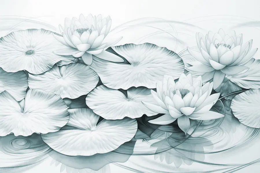 Fototapeten Gruppe von Seerosenblättern und Blättern