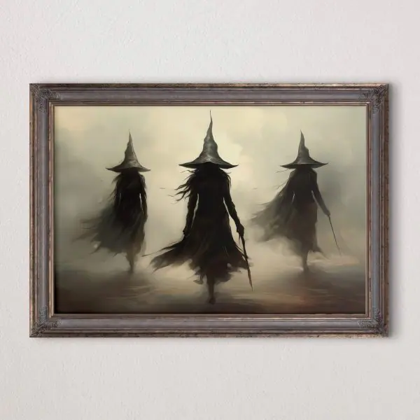 25.01 €15.01 €Wandbilder Gruppe von Frauen in schwarzen Gewändern und Hüten geht im Nebel