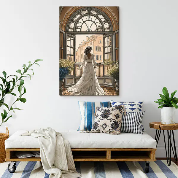25.01 €15.01 €Wandbilder Frau im weißen Kleid schaut aus dem Fenster