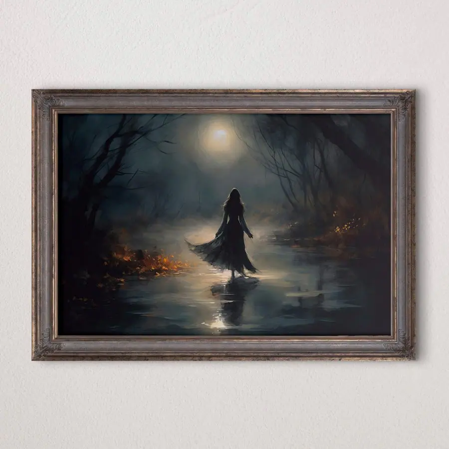 Wandbilder Frau geht in einem dunklen Wald spazieren