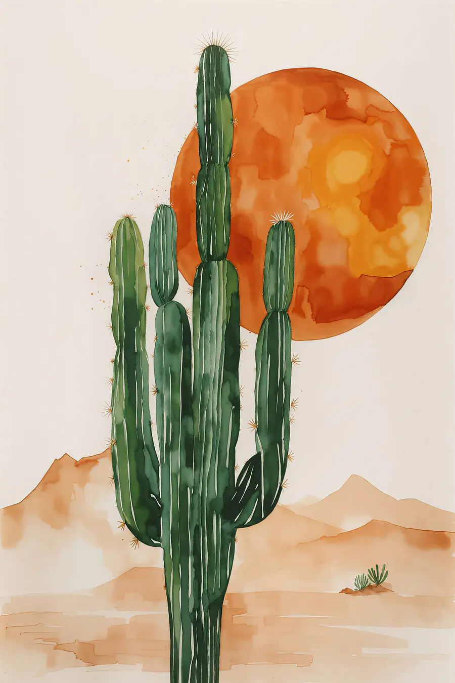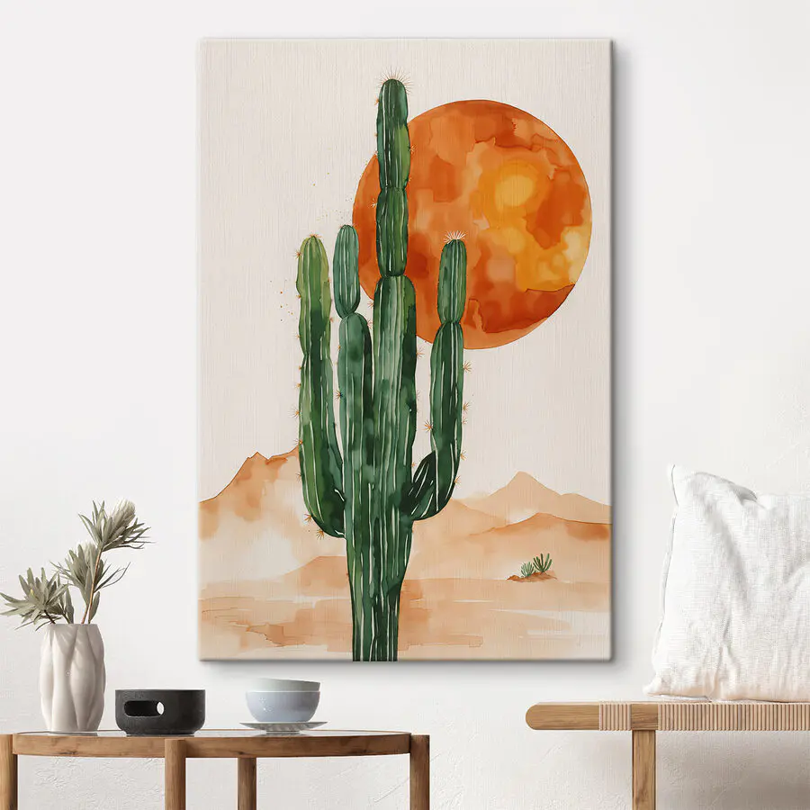 Wandbilder Gemälde eines Kaktus und einer Sonne