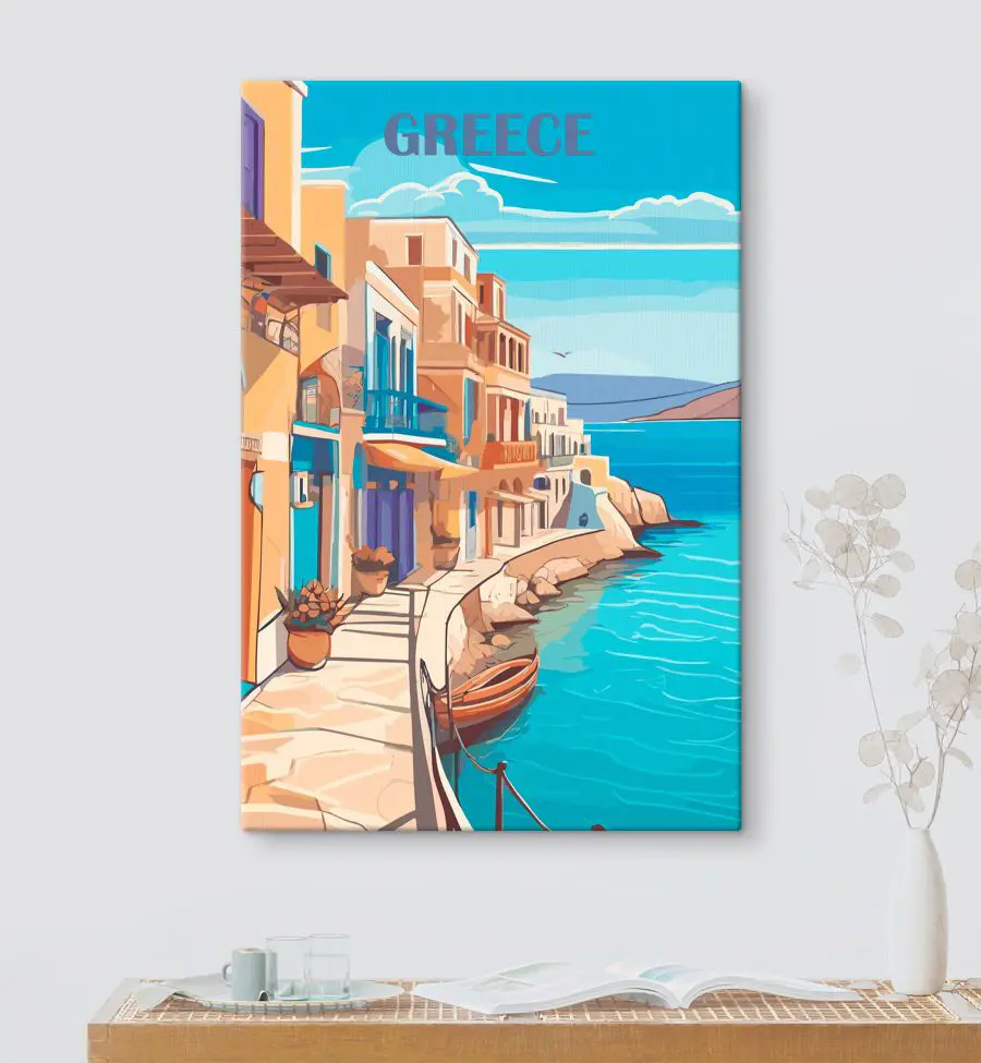 25.01 €15.01 €Wandbilder Aquarell einer Stadt mit Booten und einer Brücke