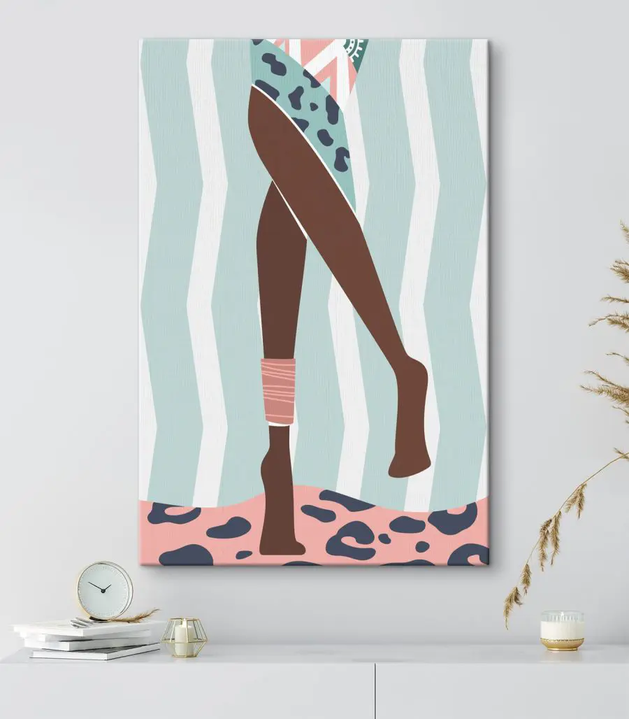 Klar doch! Stellen Sie sich das vor: ein kühner Spritzer Haltung trifft auf stilvolle Schlichtheit. Dieser Leinwanddruck mit den Beinen einer Frau ist mehr als nur Kunst - er ist ein Lebensgefühl. Die eleganten Linien und verspielten Muster lassen Ihre Wand vor Freude tanzen. Perfekt für alle, die sich nach einem Hauch von Minimalismus mit einem Hauch von Laune sehnen. Ob es nun ein Gespräch anregt oder Sie einfach nur zum Lächeln bringt, wenn Sie vorbeigehen - es fügt sich nahtlos in jeden Raum ein. Wie ein kleines Stückchen Freude, von dem Sie nicht wussten, dass Sie es brauchen.
