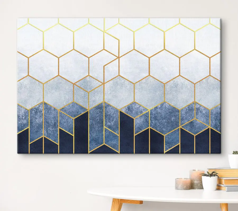 Wandbilder Muster aus blauen und weißen Sechsecken