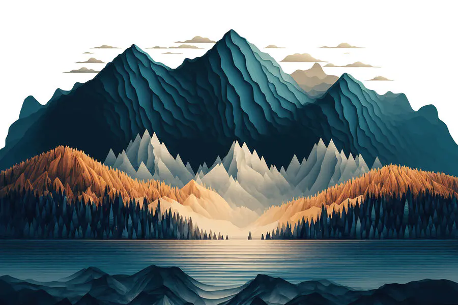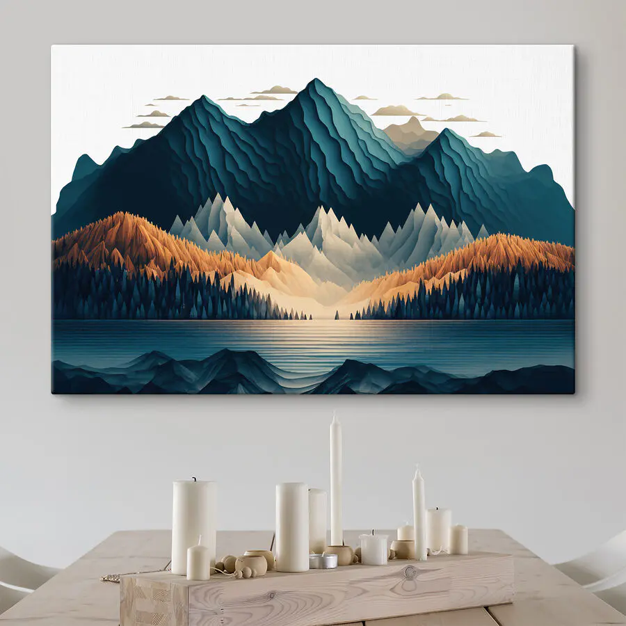 Wandbilder Eine Bergkette mit Bäumen und einem See