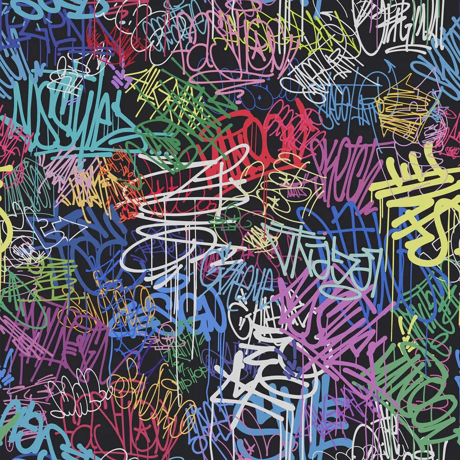 Wandbilder Ein buntes Graffiti auf schwarzem Hintergrund