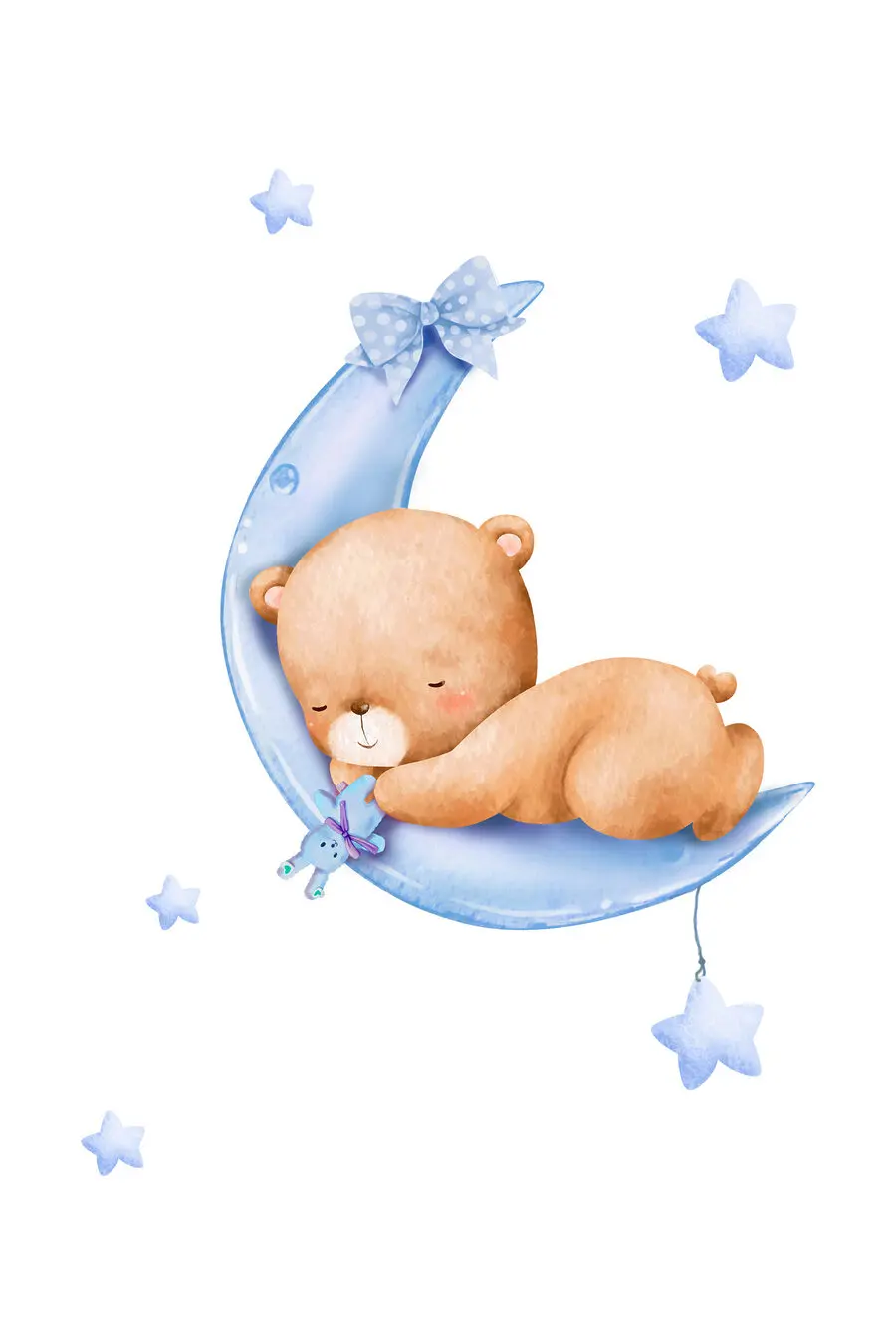 Wandbilder Ein Teddybär schläft auf dem Mond
