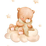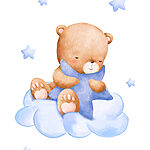Wandbilder Ein Teddybär sitzt auf einer Wolke