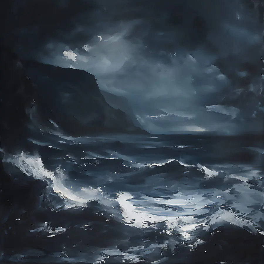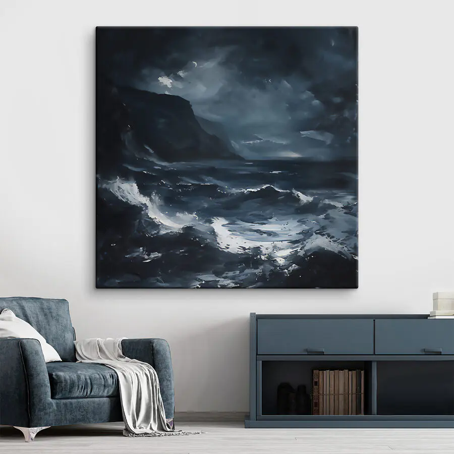 Wandbilder Ein stürmisches Meer mit Bergen und Wolken