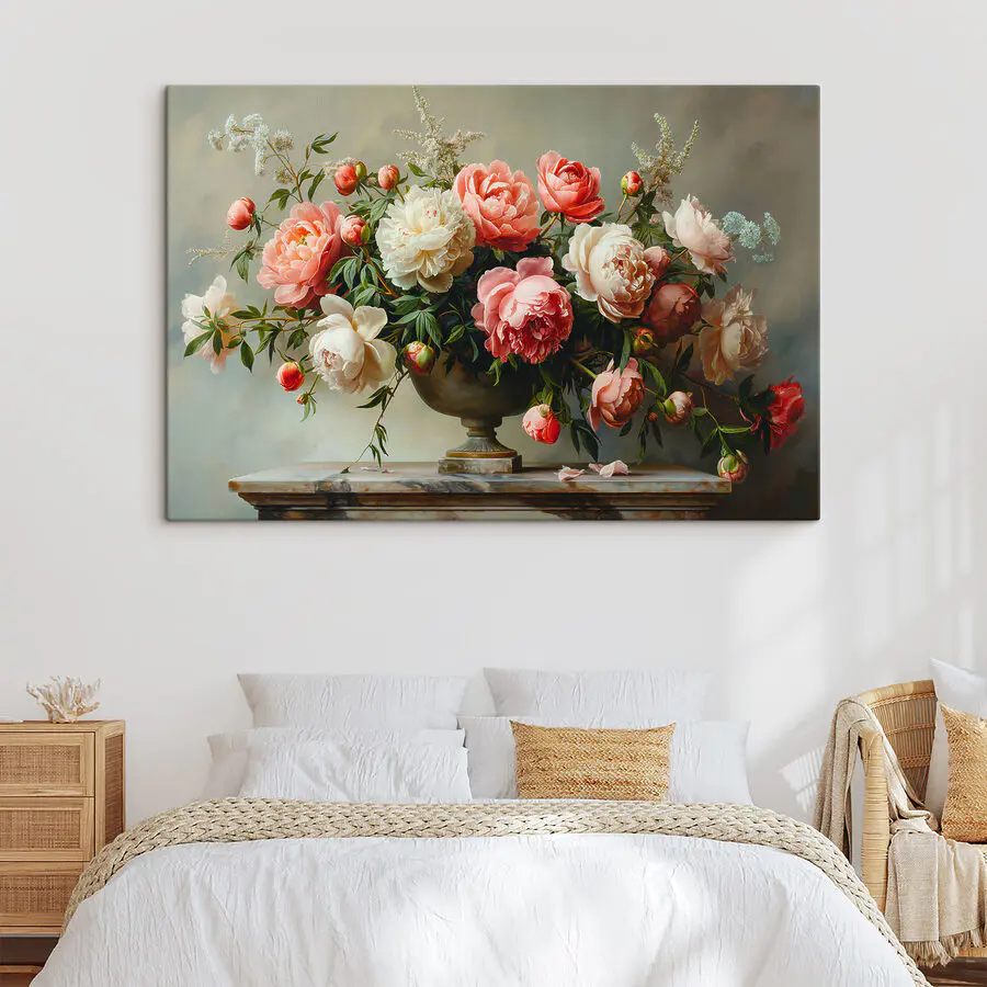 Stellen Sie sich dieses bezaubernde Leinwandbild in Ihrem Wohnzimmer oder Flur vor - es ist wirklich so, als hätte ein Stück Natur den Weg ins Haus gefunden! "A Vase of Pink and White Flowers" fängt Rosa- und Weißtöne ein, die so zart sind, dass Sie die Blütenblätter fast an Ihren Fingern spüren können. Die Farben sind knallig und erhellen jeden Raum mit Wärme und Anmut. Schick, aber nicht zu schick, fühlt es sich gemütlich und einladend an, so als ob man nach Hause kommt und umarmt wird. Stellen Sie sich diese üppigen Blüten an einem ruhigen Morgen vor, mit einer Tasse Kaffee in der Hand - pure Glückseligkeit, oder? Dieses Stück ist ein Stück Kunst, das mit der Freude des Alltags verschmolzen ist, perfekt, um Ihrem Raum einen Hauch von Schönheit zu verleihen.
