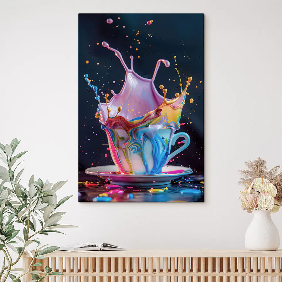 Wandbilder Eine bunte Flüssigkeit spritzt in eine Tasse