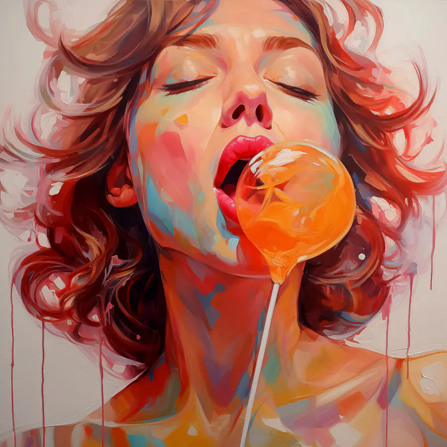 Hier ist ein Leinwanddruck, der alle Blicke auf sich ziehen wird: "Frau mit roten Haaren und einem Lutscher". Dieses Werk bewegt sich zwischen den Linien von abstrakter und bildender Kunst. Stellen Sie sich diesen kühnen Druck in Ihrem Wohnzimmer oder an einer leeren Wand in Ihrem Büro vor - und Sie werden sofort ins Gespräch kommen! Die leuchtenden Farben und die verspielte, fast freche Ausstrahlung versprühen einen einzigartigen Charme. Sie müssen einfach lächeln, wenn Sie es betrachten. Es macht einfach Spaß! Stellen Sie sich vor, Sie haben Freunde zu Besuch, und jemand sieht es von der anderen Seite des Raumes - und der Blick fällt sofort auf: "Wow, woher hast du das?" Mit seinen leuchtenden Farbtupfern und einem Hauch von Skurrilität sorgt dieser Druck für einen Energieschub. Und wer liebt nicht eine Anspielung auf die einfache Freude eines Lutschers? Nichts ist süßer.